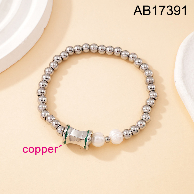 Home > Level B Fashion Jewelry New Trendy Women Jewelry Pearl Style/Plastic Beads Slender waist Steel color Elastic Bracelet;Material:copper (cobre)