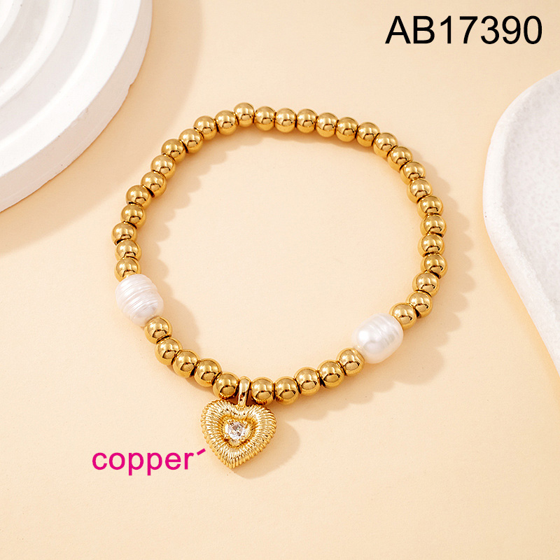 Level B Fashion Jewelry New Trendy Women Jewelry Pearl Style/Plastic Beads Heart Golden Elastic Bracelet;Material:copper (cobre)