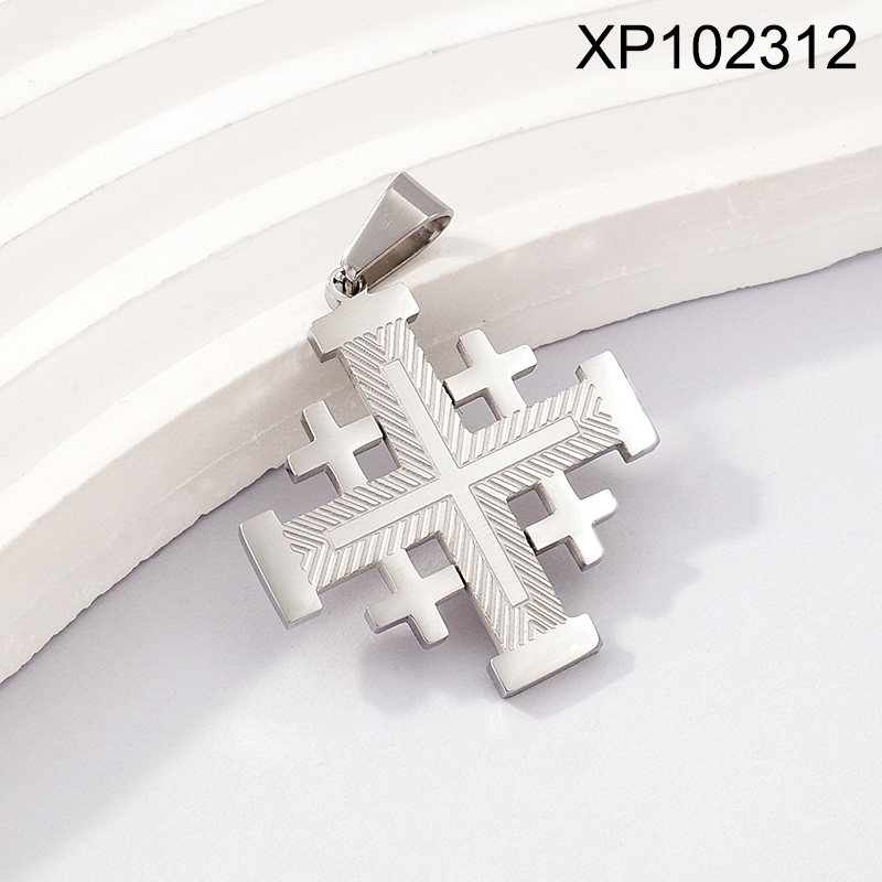 Level B Stainless Steel New Trendy Man Jewelry Cross Steel color Pendant