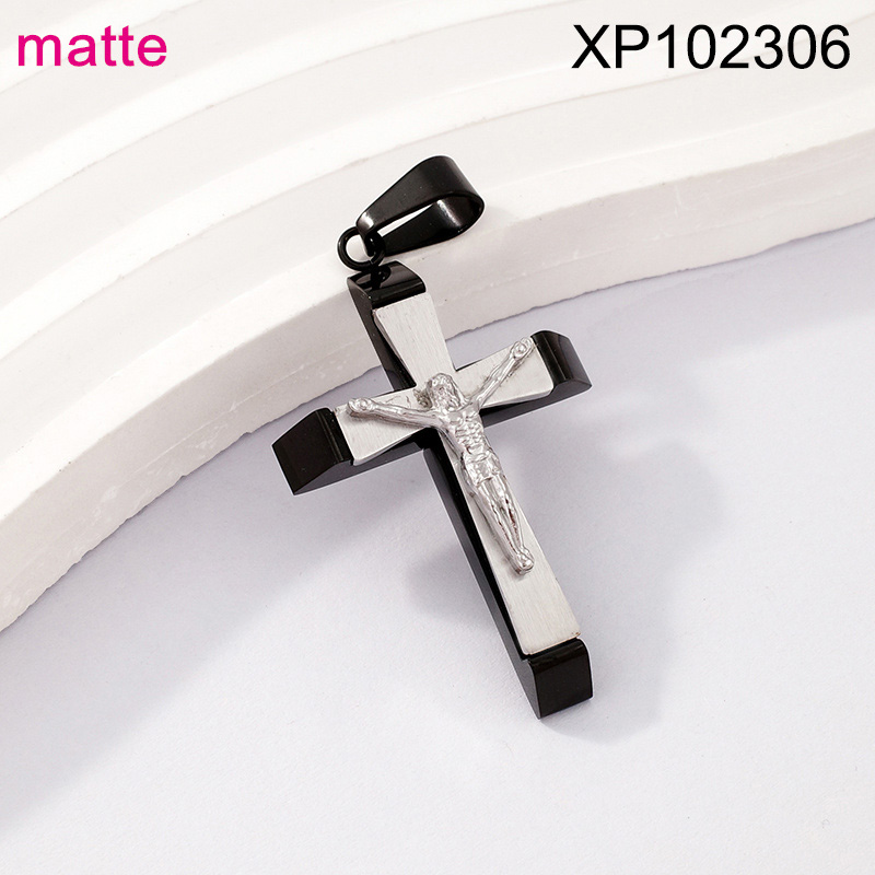 Level B Stainless Steel New Trendy Man Jewelry Cross Jesus Two Tone Matte Pendant