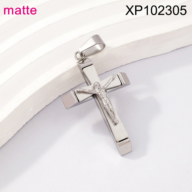 Level B Stainless Steel New Trendy Man Jewelry Cross Jesus Steel color Matte Pendant