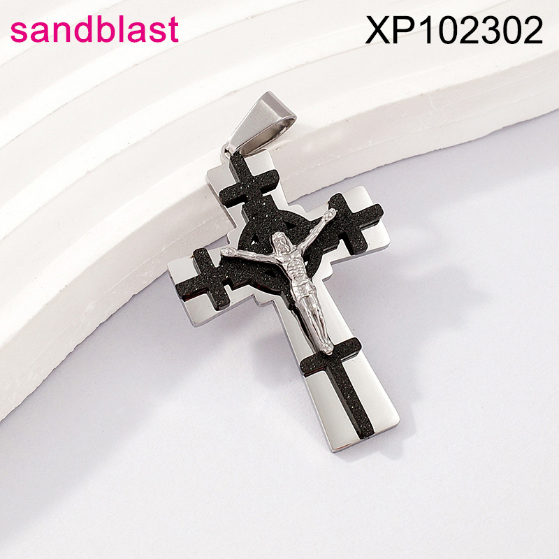 Level B Stainless Steel New Trendy Man Jewelry Cross Jesus Two Tone Sandblast Pendant