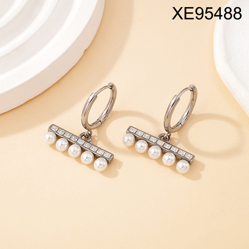 Level B Stainless Steel New Trendy Women Jewelry Pearl Style/Plastic Beads Steel color Hoop Earrings