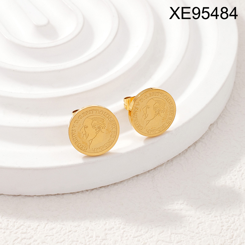 Level A Stainless Steel New Trendy Women Jewelry Coin People Golden Earrings