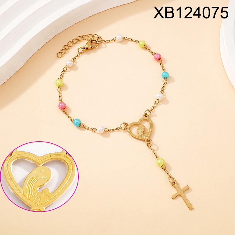 Home > Level B Stainless Steel New Trendy Women Jewelry Drip Oil/Enamel Bead Chain Religion Cross Golden Bracelet