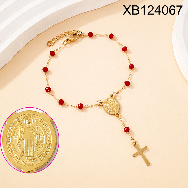 Home > Level B Stainless Steel New Trendy Women Jewelry Drip Oil/Enamel Bead Chain Religion Cross Golden Bracelet