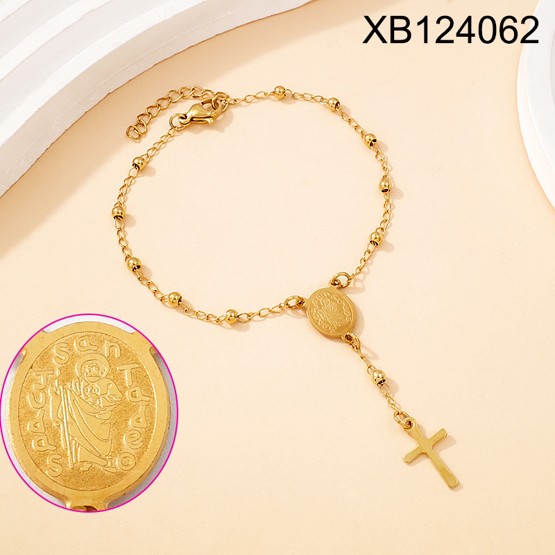 Level B Stainless Steel New Trendy Women Jewelry Bead Chain Religion Cross Golden Bracelet