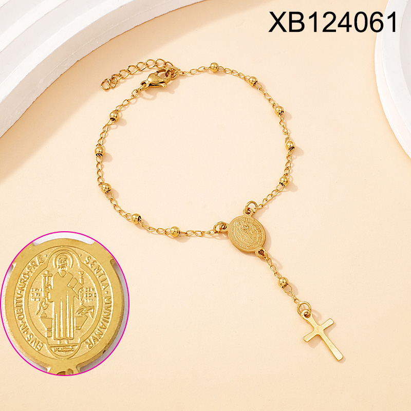Level B Stainless Steel New Trendy Women Jewelry Bead Chain Religion Cross Golden Bracelet
