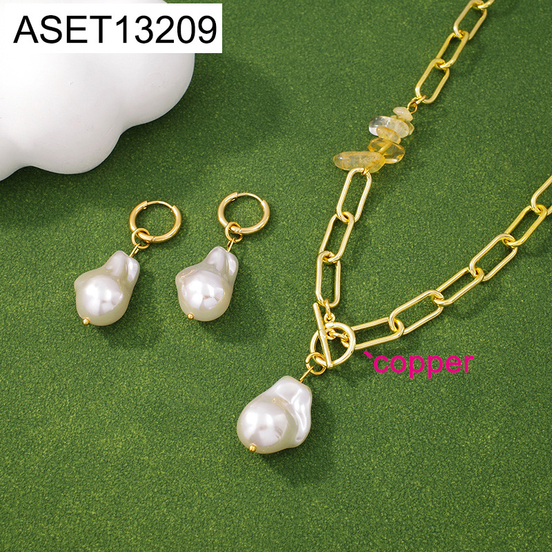 Home > Level B Fashion Jewelry New Trendy Women Jewelry Pearl Style/Plastic Beads Golden SET;Material:copper (cobre)