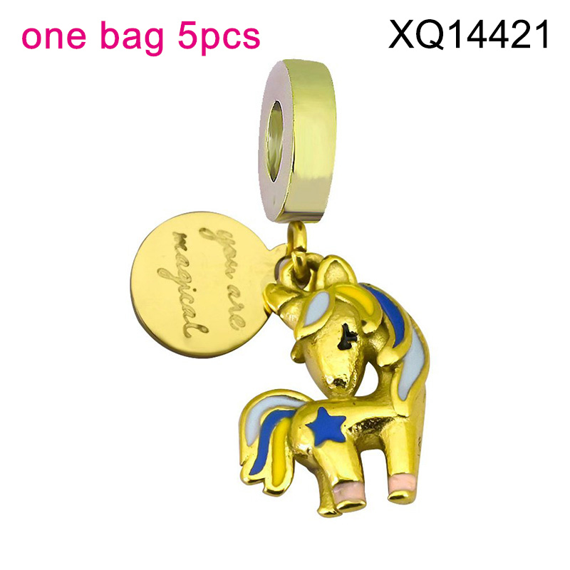 Home > Level B Stainless Steel New Trendy Jewelry Drip Oil/Enamel Unicorn Golden DIY Charms