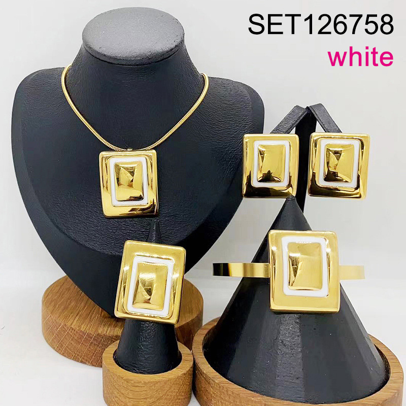 Home > Level B Stainless Steel New Trendy Women Jewelry White Rectangle Golden 4pcs SET