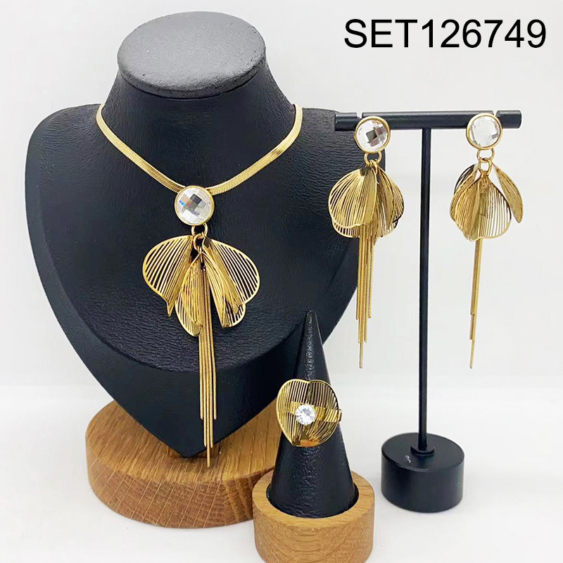 Level B Stainless Steel New Trendy Women Jewelry Golden 3pcs SET