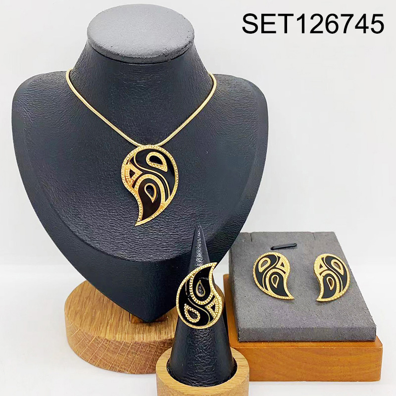 Level B Stainless Steel New Trendy Women Jewelry Water Drip Golden 3pcs SET