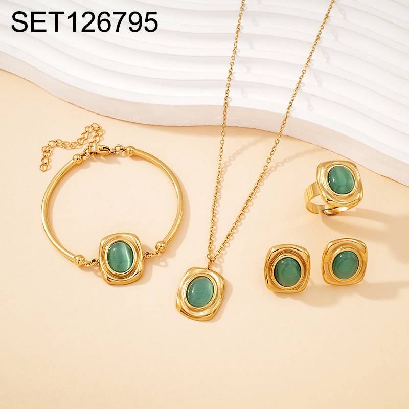 Level B Stainless Steel New Trendy Women Jewelry Opal Geometry Golden 4pcs SET