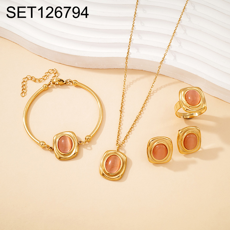 Level B Stainless Steel New Trendy Women Jewelry Opal Geometry Golden 4pcs SET