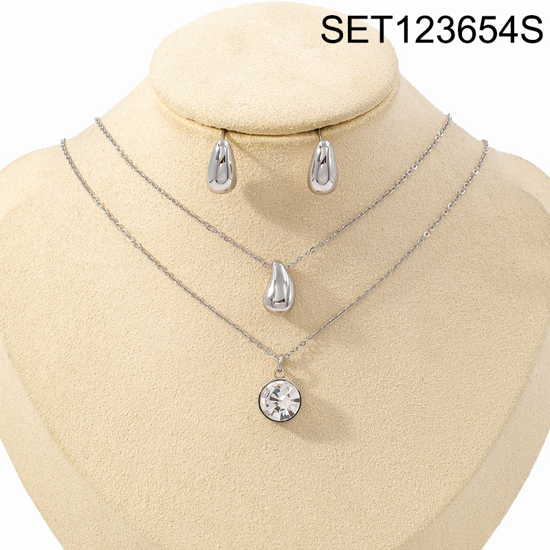 Level A Stainless Steel New Trendy Women Jewelry Two Layers Chain Water Drip Shape Steel color SET