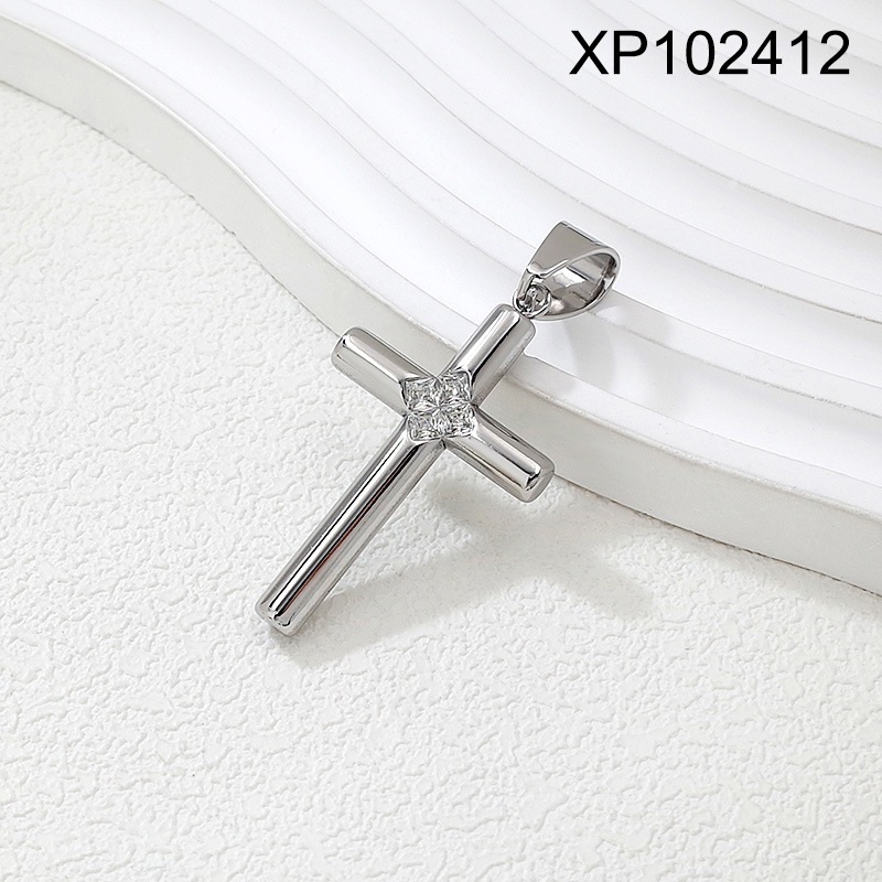 Level B Stainless Steel New Trendy Man Jewelry Cross Steel color Pendant