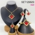 Level B Stainless Steel New Trendy Women Jewelry Red Glass Square Golden 4pcs SET