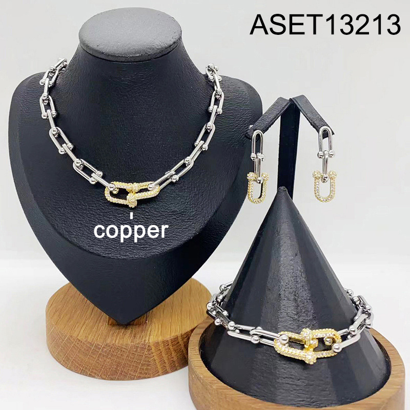 Level B Fashion Jewelry New Trendy Women Jewelry Horseshoe buckle Two Tone 3pcs SET;Material:copper (cobre)