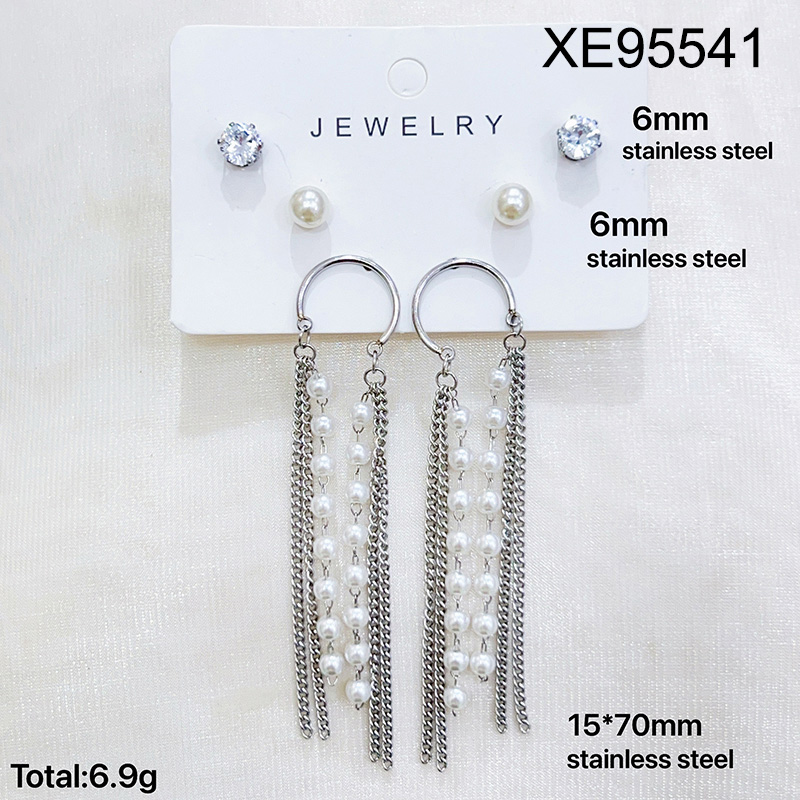 Level B Stainless Steel New Trendy Women Jewelry Pearl Style/Plastic Beads Tassel Steel color Earrings