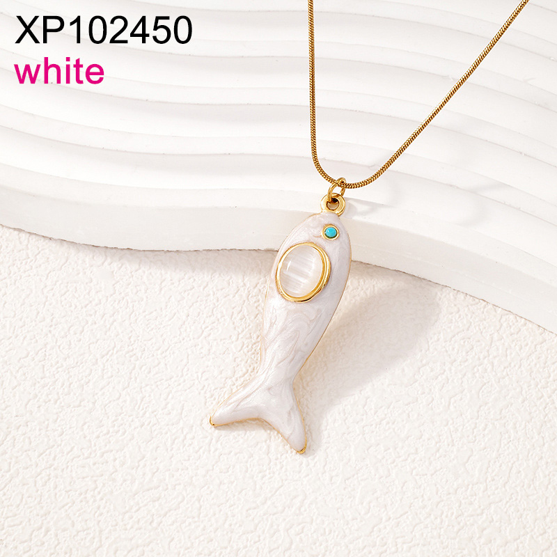 Level B Stainless Steel New Trendy Women Jewelry Drip Oil/Enamel White Animal Fish Golden Pendant