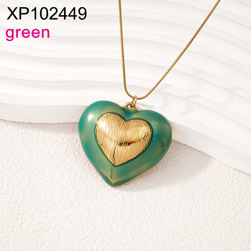 Home > Level B Stainless Steel New Trendy Women Jewelry Drip Oil/Enamel Green Heart Golden Valentine's Day Pendant
