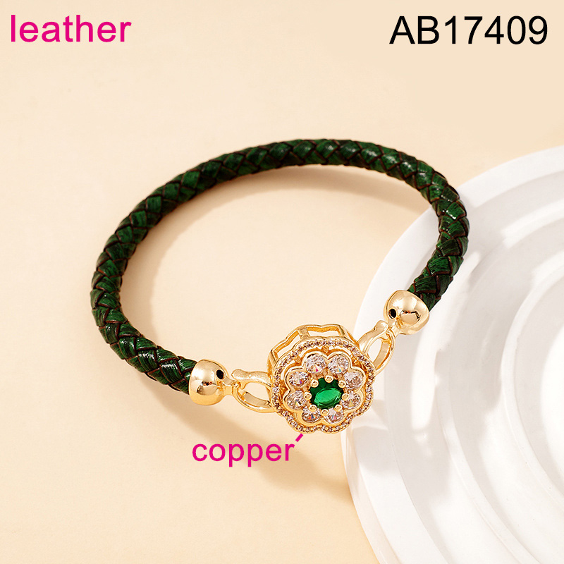 Level B Fashion Jewelry New Trendy Women Jewelry Flower Golden Leather Bracelet;Material:copper (cobre)