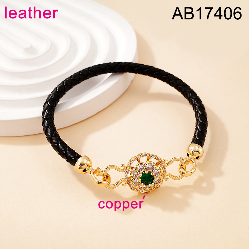 Level B Fashion Jewelry New Trendy Women Jewelry Flower Golden Leather Bracelet;Material:copper (cobre)