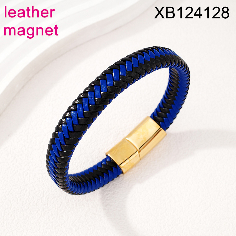 Home > Level B Stainless Steel New Trendy Man Jewelry Golden Magnet buckle Leather Bracelet
