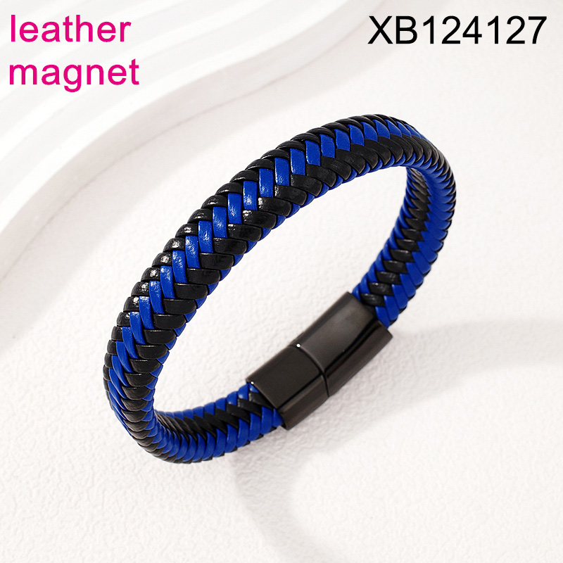 Home > Level B Stainless Steel New Trendy Man Jewelry Plating Black Magnet buckle Leather Bracelet
