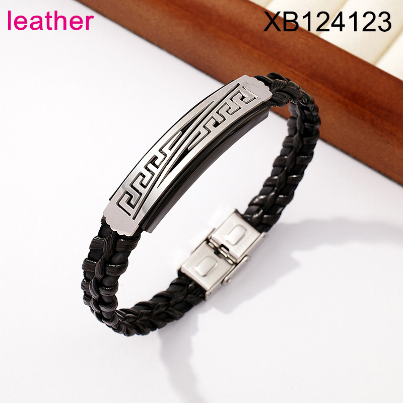 Home > Level B Stainless Steel New Trendy Man Jewelry Great Wall Pattern Steel color Leather Bracelet