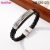 Level B Stainless Steel New Trendy Man Jewelry Great Wall Pattern Steel color Leather Bracelet