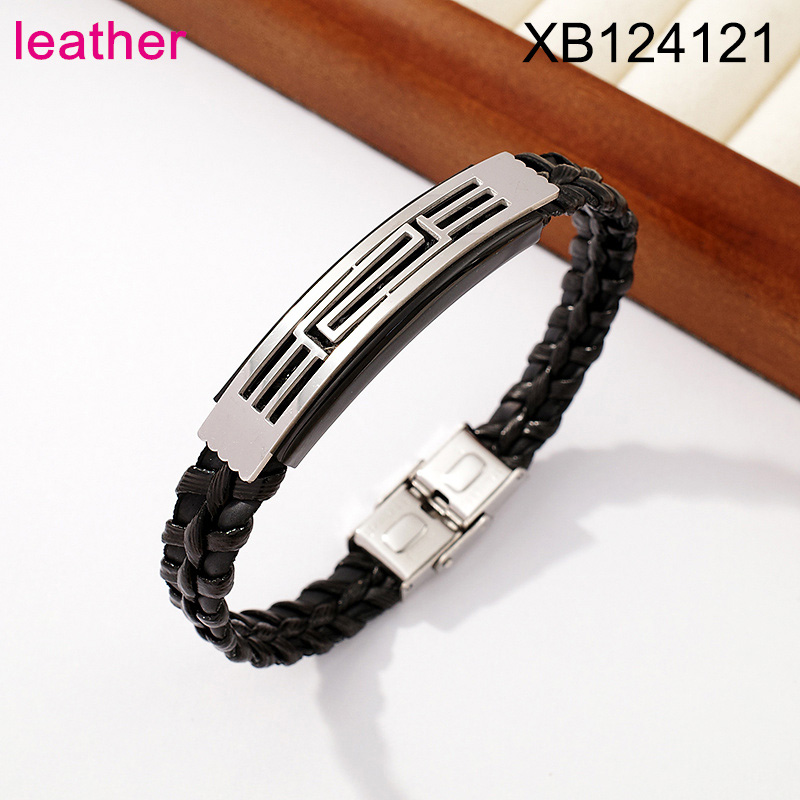 Home > Level B Stainless Steel New Trendy Man Jewelry Great Wall Pattern Steel color Leather Bracelet