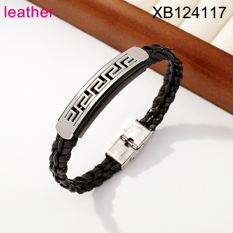 Home > Level B Stainless Steel New Trendy Man Jewelry Great Wall Pattern Steel color Leather Bracelet