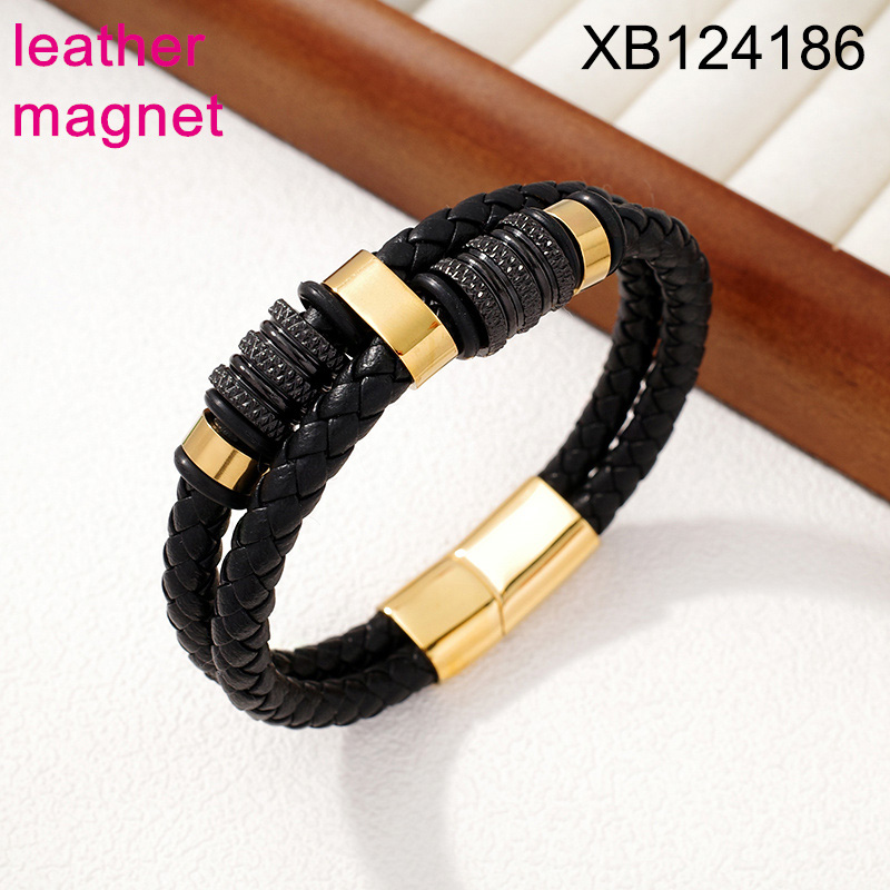 Home > Level B Stainless Steel New Trendy Man Jewelry Two Layer Chain Two Tone Magnet buckle Leather Bracelet