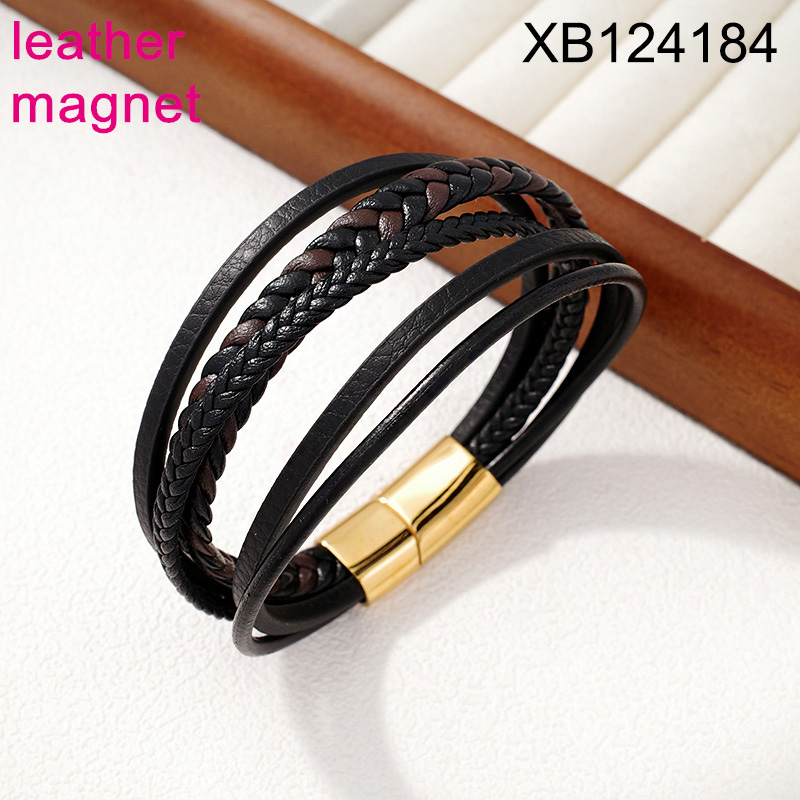 Home > Level B Stainless Steel New Trendy Man Jewelry Five Layer Chain Golden Magnet buckle Leather Bracelet