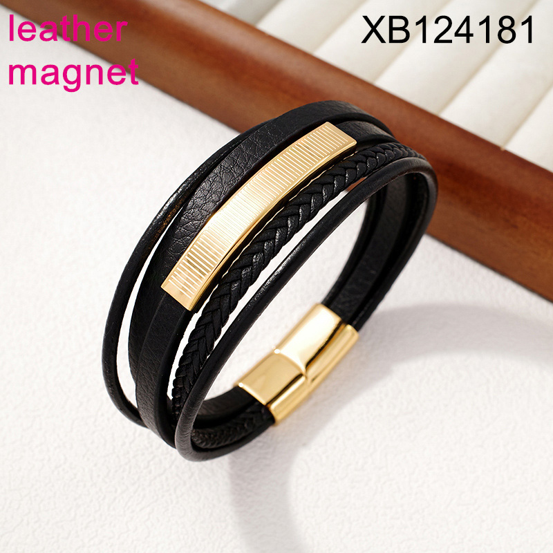 Home > Level B Stainless Steel New Trendy Man Jewelry Five Layer Chain Golden Magnet buckle Leather Bracelet