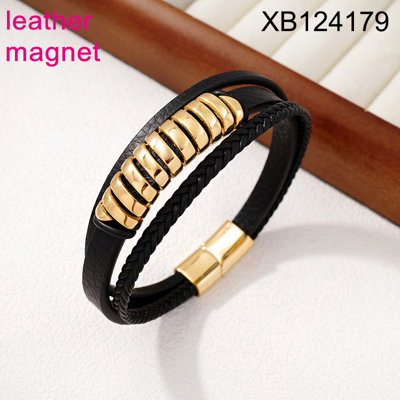 Home > Level B Stainless Steel New Trendy Man Jewelry Three Layer Chain Golden Magnet buckle Leather Bracelet