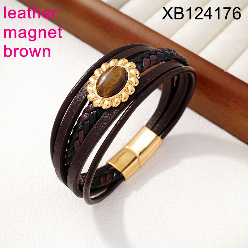 Home > Level B Stainless Steel New Trendy Man Jewelry Five Layer Chain Golden Magnet buckle Leather Bracelet