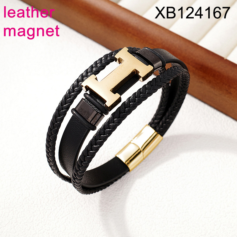 Home > Level B Stainless Steel New Trendy Man Jewelry Three Layer Chain Letter H Golden Magnet buckle Leather Bracelet