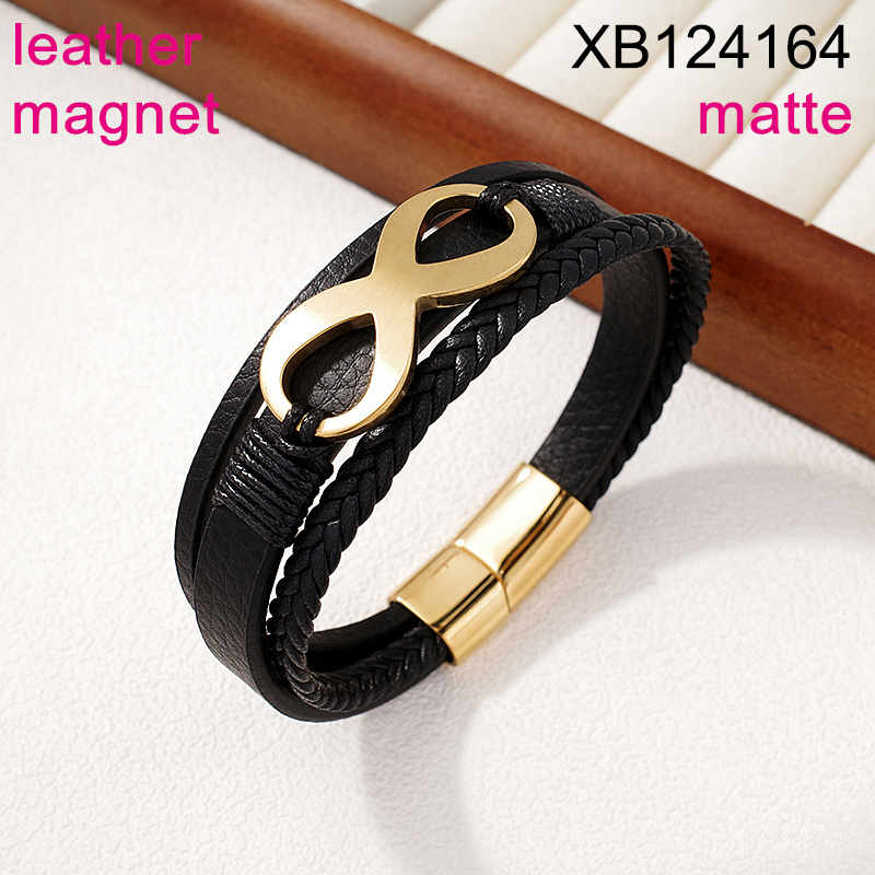 Home > Level B Stainless Steel New Trendy Man Jewelry Three Layer Chain Lnfinity Jewelry/Number Eight Golden Magnet buckle Leather Bracelet