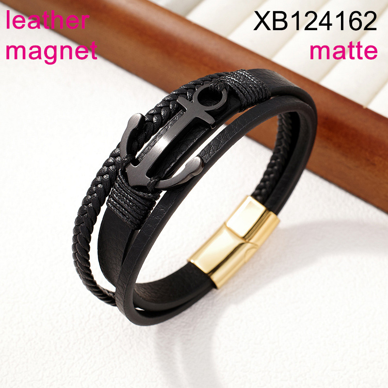 Home > Level B Stainless Steel New Trendy Man Jewelry Three Layer Chain Anchor Two Tone Magnet buckle Leather Bracelet