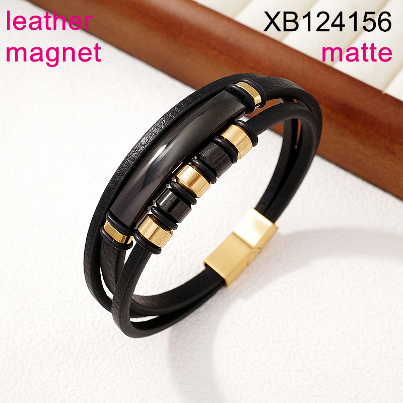 Home > Level B Stainless Steel New Trendy Man Jewelry Three Layer Chain Two Tone Magnet buckle Leather Bracelet