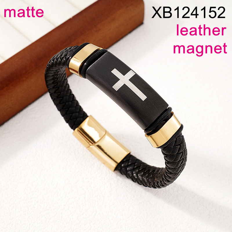 Level B Stainless Steel New Trendy Man Jewelry Cross Two Tone Magnet buckle Leather Bracelet