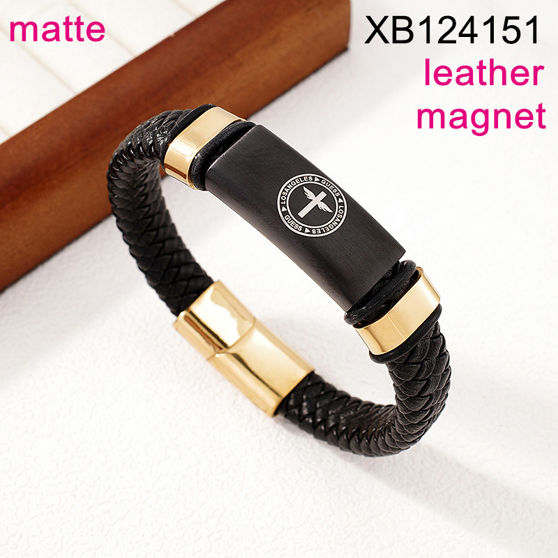Level B Stainless Steel New Trendy Man Jewelry Cross Two Tone Magnet buckle Leather Bracelet