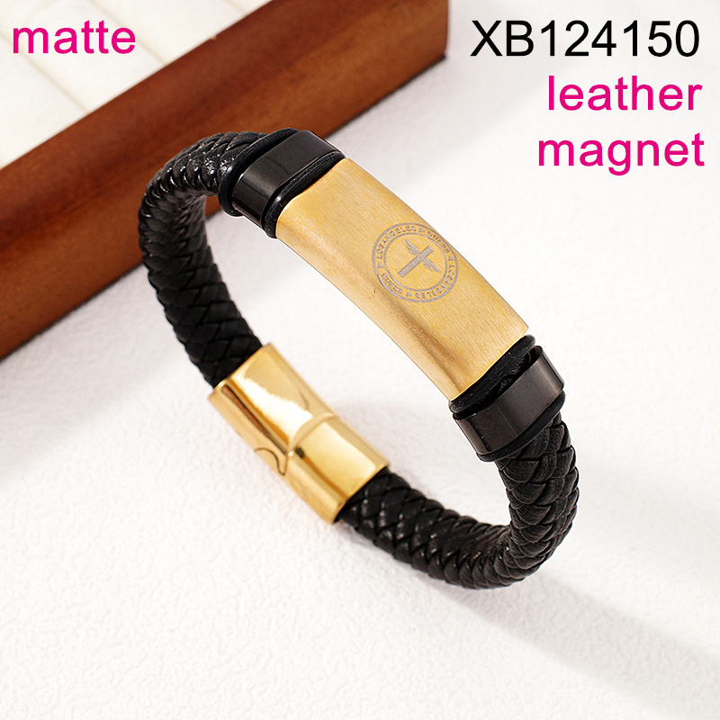 Level B Stainless Steel New Trendy Man Jewelry Cross Two Tone Magnet buckle Leather Bracelet