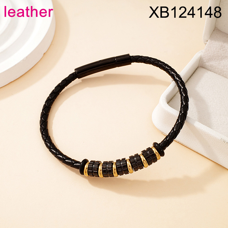 Home > Level B Stainless Steel New Trendy Man Jewelry Two Tone Leather Bracelet