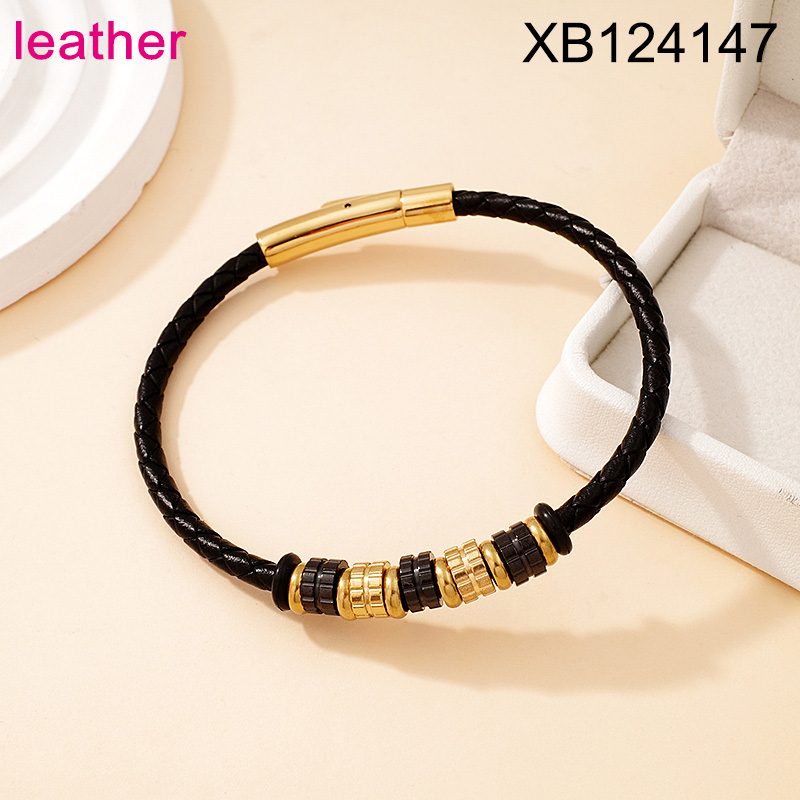 Home > Level B Stainless Steel New Trendy Man Jewelry Two Tone Leather Bracelet