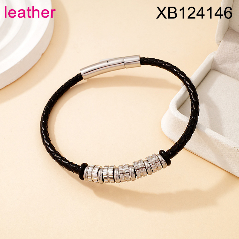 Level B Stainless Steel New Trendy Man Jewelry Steel color Leather Bracelet