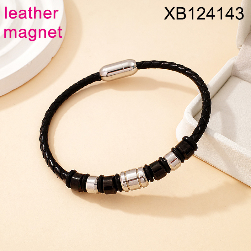 Home > Level B Stainless Steel New Trendy Man Jewelry Steel color Magnet buckle Leather Bracelet